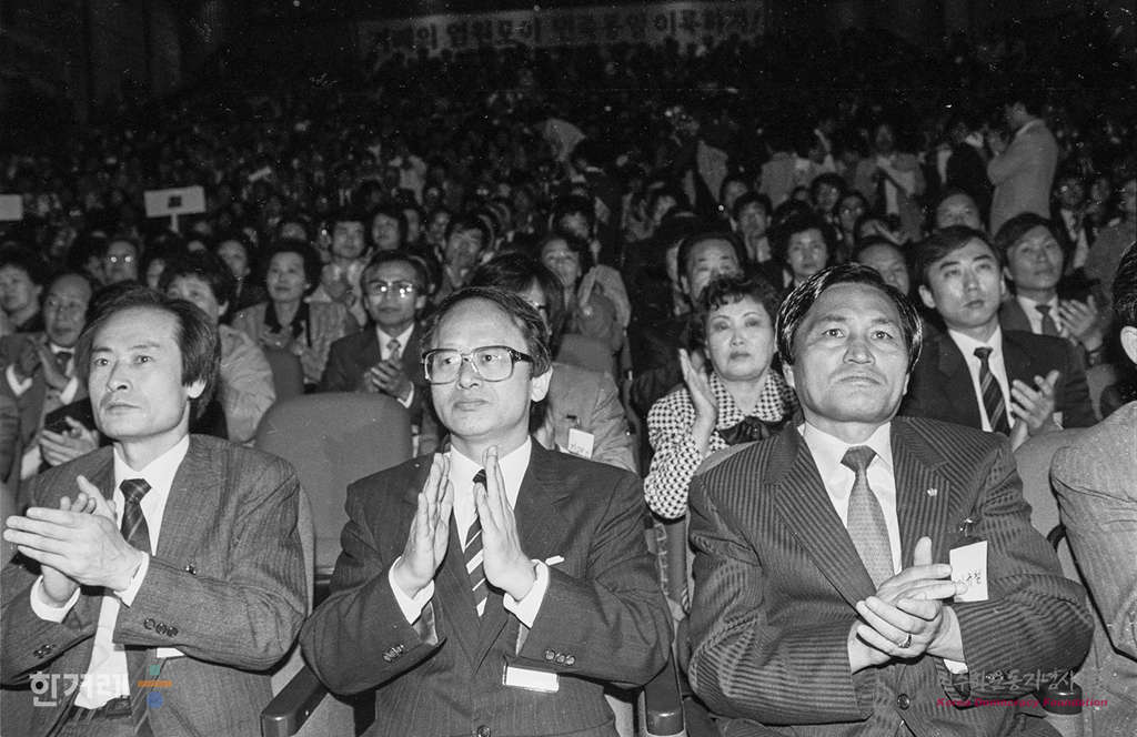 - 1990년 4월 13일 민중의 정당건설을 위한 민주연합 추진위원회(민연추) 결성대회가 서울 삼성동 한국종합전시장에서 열려 민중의 정치세력화와 자주 민주 통일의 역사적 과업을 달성할 것을 선언하고 있다. 이날 결성대회에서 고영구 백기완 이우재씨가 공동대표가 됐다.
