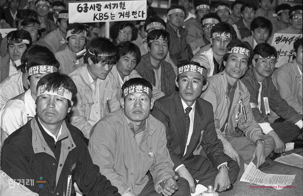 - 1990년 4월 13일 오후1시 한국방송공사 사원들이 본관 2층 중앙홀에서 비노조원을 포함한 3천 5백여명이 참석해 경찰의 방송국난입에 항의하는 사원총회를 열고 신임사장 서기원씨가 퇴진할 때까지 무기한 제작거부 및 밤샘농성을 계속키로 결의하고 있다.