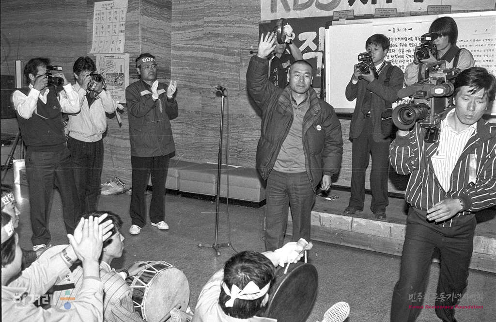 - 1990년 4월 14일 방송사 경찰진입과 노조원 강제연행항의와 신임 서기원 사장 퇴진을 요구하며 KBS 비상대책위가 사흘째 밤샘 농성을 이어가고 있다. 업무방해 및 폭력행위 등 처벌에 관한 법률 위한혐의로 불구속입건된 안동수 노조위원장를 비롯한 노조간부들이 풀려나 비상총회에 참석하고 있다.