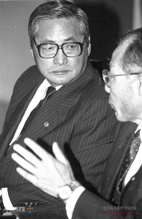 - 1990년 4월 16일 정원식 문교부장관과 이수호 전 전교조사무처장이 사립학교법 위헌심판변론을 위해 헌법재판소 재판정에 출석 악수를 나누고 있다. 정 장관은 전교조가 결성된 일 처음으로 전교조쪽 관계자를 만났다.