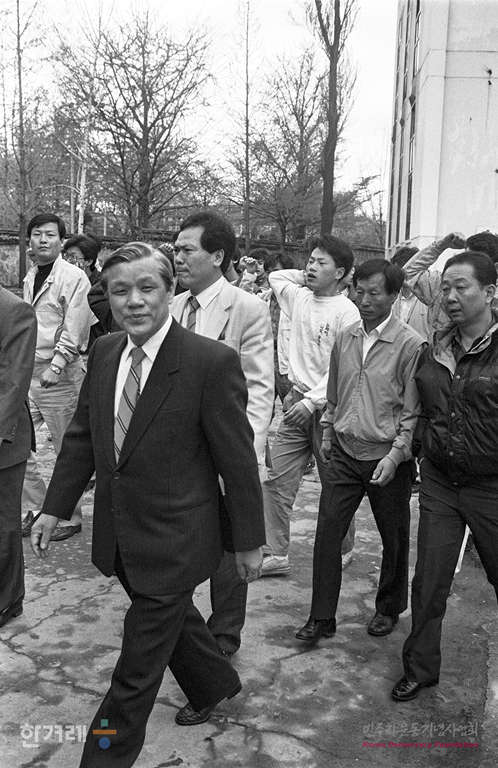 - 1990년 4월 16일 오전 10시 1대학 2총장문제로 진통을 겼어론 세종대가 지난 15일 0시를 기해 학교쪽이 무기한 임시휴업 조처를 내리고 경찰투입을 요청하면서 학내분규가 심화되는 가운데 박홍구 총장이 보직교수 등 20여명과 함께 7개월 만에 교내에 들어가려다 학생들의 저지되고 있다.