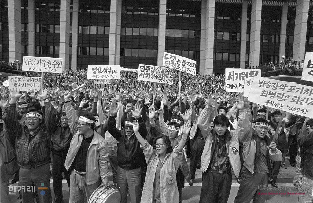 - 1990년 4월 16일 낮 12시 경찰진입과 노조원 강제연행에 항의, 신임 서기원 사장 퇴진을 요구하며 전국언론노동조합연맹이 kbs본관앞 공터에서 연맹 중앙깁행간부, 47개 회원사 노조간부 및 kbs 본사 지방국 사원 등 3천여명이 참석한 가운데 공권력 투입 규탄 및 서 사장 퇴진촉구 결의대회를 갖고 있다.
