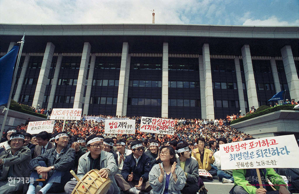 - 1990년 4월 16일 낮 12시 경찰진입과 노조원 강제연행에 항의, 신임 서기원 사장 퇴진을 요구하며 전국언론노동조합연맹이 kbs본관앞 공터에서 연맹 중앙깁행간부, 47개 회원사 노조간부 및 kbs 본사 지방국 사원 등 3천여명이 참석한 가운데 공권력 투입 규탄 및 서 사장 퇴진촉구 결의대회를 갖고 있다.
