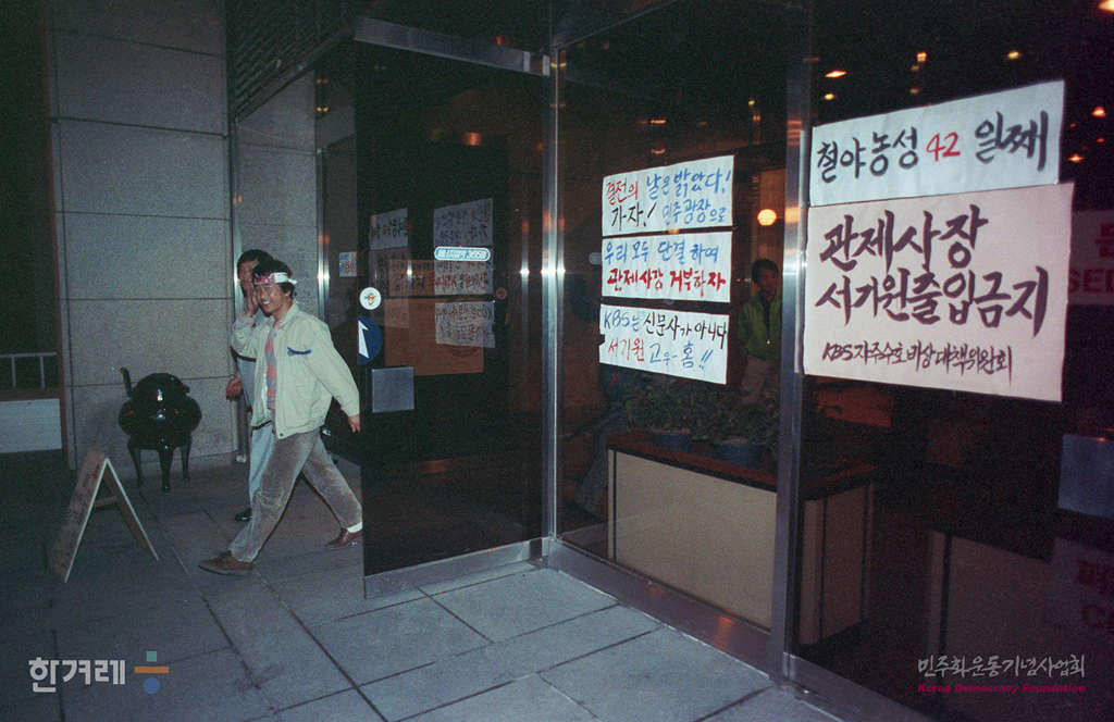 - 1990년 4월 16일 경찰진입과 노조원 강제연행에 항의, 신임 서기원 사장 퇴진을 요구하며 사원들의 제작거부로 5일째 라디오와 텔레비전의 파행방송이 게속되고 있는 가운데 비상대책위는 본관 2층 중앙홀에서 제2차 전국사원총회를 갖고 서 사장이 퇴진할 때까지 제작거부 및 농성을 계속할 것을 결의하고 있다.
