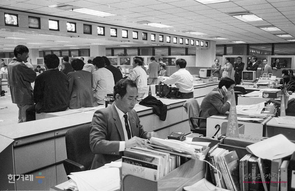 - 1990년 4월 16일 경찰진입과 노조원 강제연행에 항의, 신임 서기원 사장 퇴진을 요구하며 사원들의 제작거부로 5일째 라디오와 텔레비전의 파행방송이 게속되고 있는 가운데 비상대책위는 본관 2층 중앙홀에서 제2차 전국사원총회를 갖고 서 사장이 퇴진할 때까지 제작거부 및 농성을 계속할 것을 결의하고 있다.