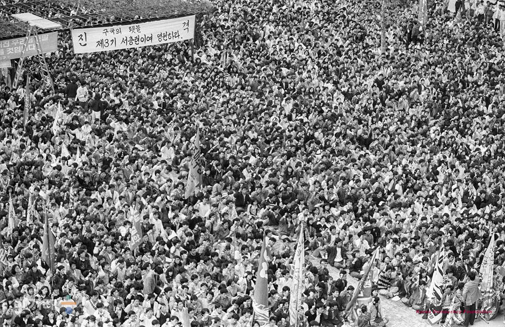 - 1990년 4월 17일 오후2시 서울지역 총학생회연합 소속 서울지역 38개대 5천여명의 학생들이 고려대 학생회관 앞 민주광장에서 제3기 출범식을 갖고 친미보수대연합 분쇄와 노동운동탄압 분쇄, 조국통일운동 전개 등을 다짐하고 있다.
