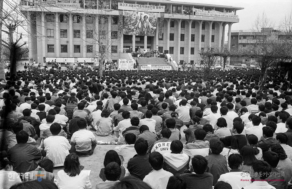 - 1990년 4월 17일 오후2시 서울지역 총학생회연합 소속 서울지역 38개대 5천여명의 학생들이 고려대 학생회관 앞 민주광장에서 제3기 출범식을 갖고 친미보수대연합 분쇄와 노동운동탄압 분쇄, 조국통일운동 전개 등을 다짐하고 있다.