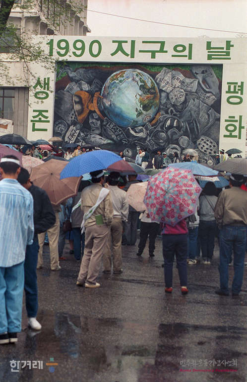 - 1990년 4월 22일 국내에서 처음 열린 1990 지구의 날 행사가 가랑비가 오는 서울 남산 어린이도서관앞 광장에서 4천여명의 어린이와 시민들이 참석한 가운데 열리고 있다.