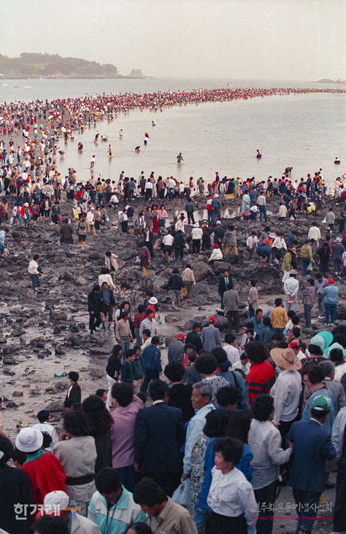 - 1990년 4월 25일 전라남도 진도군 신비의 바닷길축제가 진도 회동마을 앞바다에서 열려 많은 시민들이 참석한 가운데 영등제가 열리고 있다.