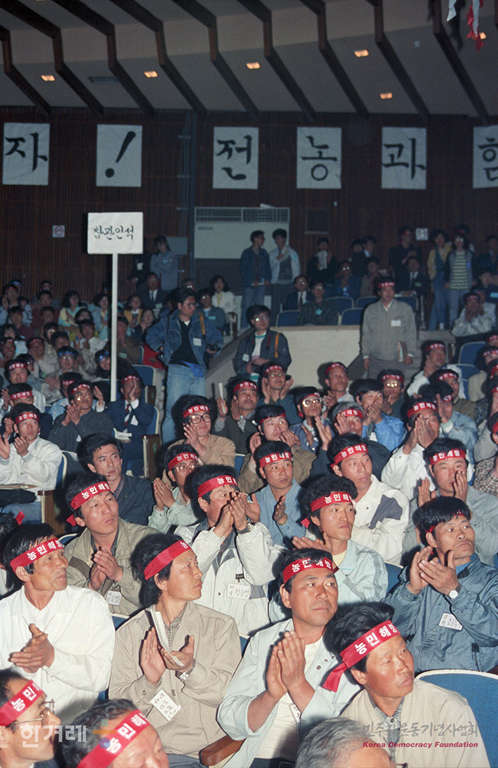 - 1990년 4월 24일 11시 정부수립 이후 최대규모의 농민조직인 전국농민회 총연맹(전농)이 건국대 학생회관 2층 중강당에서 농민 재야인사 학생 등 6백여명이 참석한 가운데 창립대회를 갖고 정식 출범하고 있다.