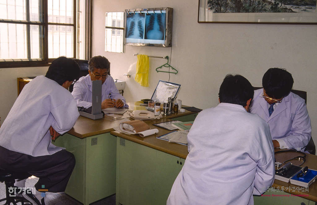 - 1990년 5월 1일 제 27일 법의날을 맞아 의료진들이 서울교도소내 수감자들을 대상으로 의료치료를 하고 있다.