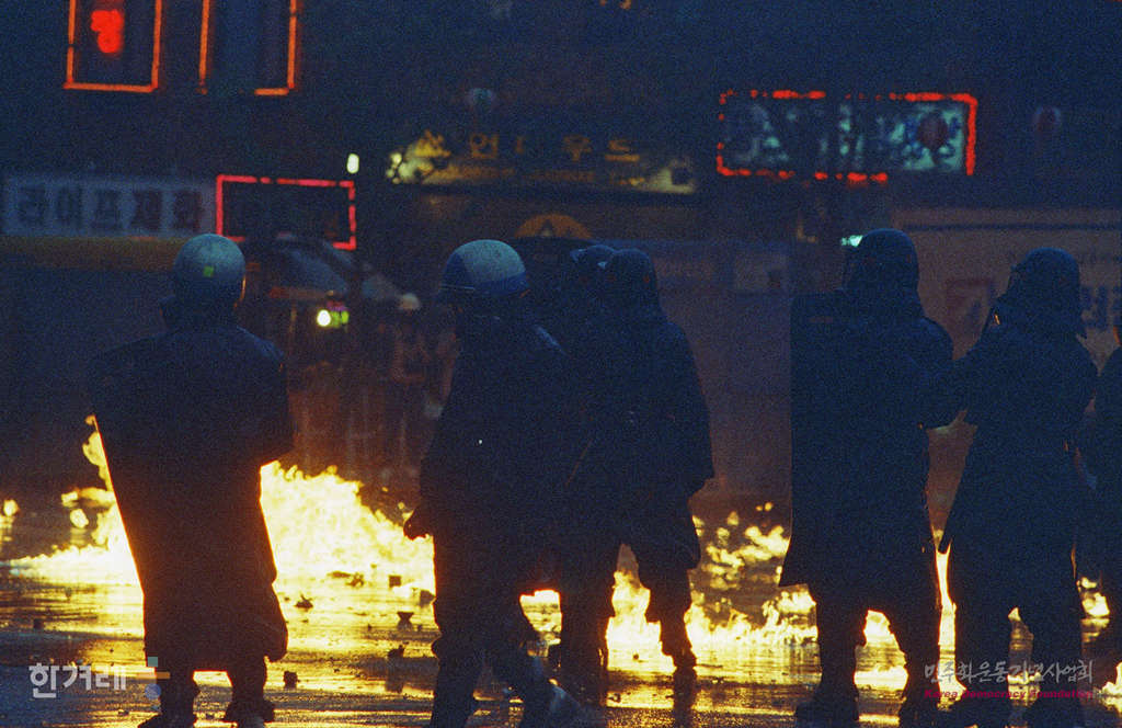 - 1990년 5월 1일 현대중공업과 한국방송공사에 대한 경찰 투입에 항의 전노협이 총파업을 선언하고 나선 가운데 세계노동절 1백1주년을 맞아 서총련 소속 대학생 1천여명이 서울 신촌로터리 일대에서 비가 내리고 있는 가운데 해체 민자당 사수전노협 등의 구호를 외치며 격렬한 시위를 벌이고 있다.