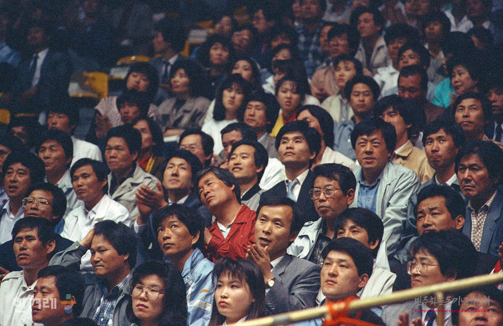 - 1990년 5월 1일 11시 30분 한국노총이 주최한 0년 노동절 기념경축대회가 서울 잠실실내체육관에서 노동자 1만여명이 참석한 가운데 열리고 있다. 한국노총이 5월1일의 메이데이행사를 갖기는 지난 59년 당시 한국노총의 전신인 대한노총이 노동절 기념일을 3월 10일로 바꾼 이래 처음이다.