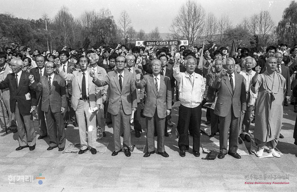 - 1991년 4월 19일 오후3시 4.19혁명 31돌을 맞아 서울 도봉구 수유동 4.19묘지에서 전민련 주최로 4월혁명 31주년 기념식 및 부패정권 규탄대회를 갖고있다.