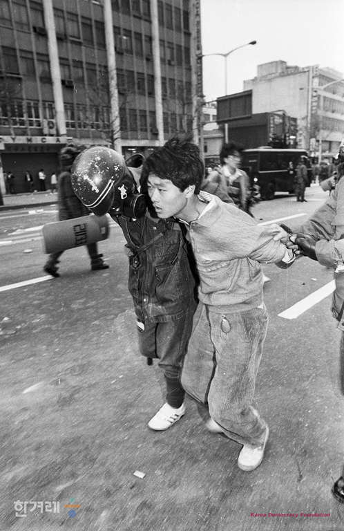 - 1991년 4월 19일 오후6시 민자당 일당독재 분쇄와 민중기본권 쟁취 국민연합이 서울 종로 파고다공원에서 노정권 퇴진 국민대회를 가지려 했으나 경찰이 저지로 무산되자 학생 시민 재야단체 회원 3천여명은 종로서적앞 8차선 도로를 점거한 채 시위를 벌이다 경찰에 연행되고 있다.