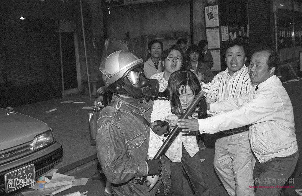 - 1991년 4월 19일 오후6시 민자당 일당독재 분쇄와 민중기본권 쟁취 국민연합이 서울 종로 파고다공원에서 노정권 퇴진 국민대회를 가지려 했으나 경찰이 저지로 무산되자 학생 시민 재야단체 회원 3천여명은 종로서적앞 8차선 도로를 점거한 채 시위를 벌이다 경찰에 연행되고 있다.