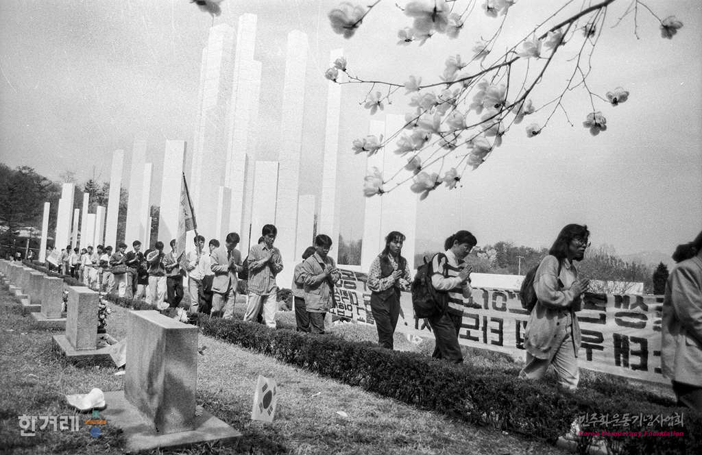- 1991년 4월 19일 오후3시 4.19혁명 31돌을 맞아 서울 도봉구 수유동 4.19묘지에 4.19희생자유족회 등 4.19 관련단체와 재야 민주단체 정치인 등의 헌화 참배행렬이 줄이어지는 가운데 전민련 주최로 4월혁명 31주년 기념식 및 부패정권 규탄대회를 갖고있다.