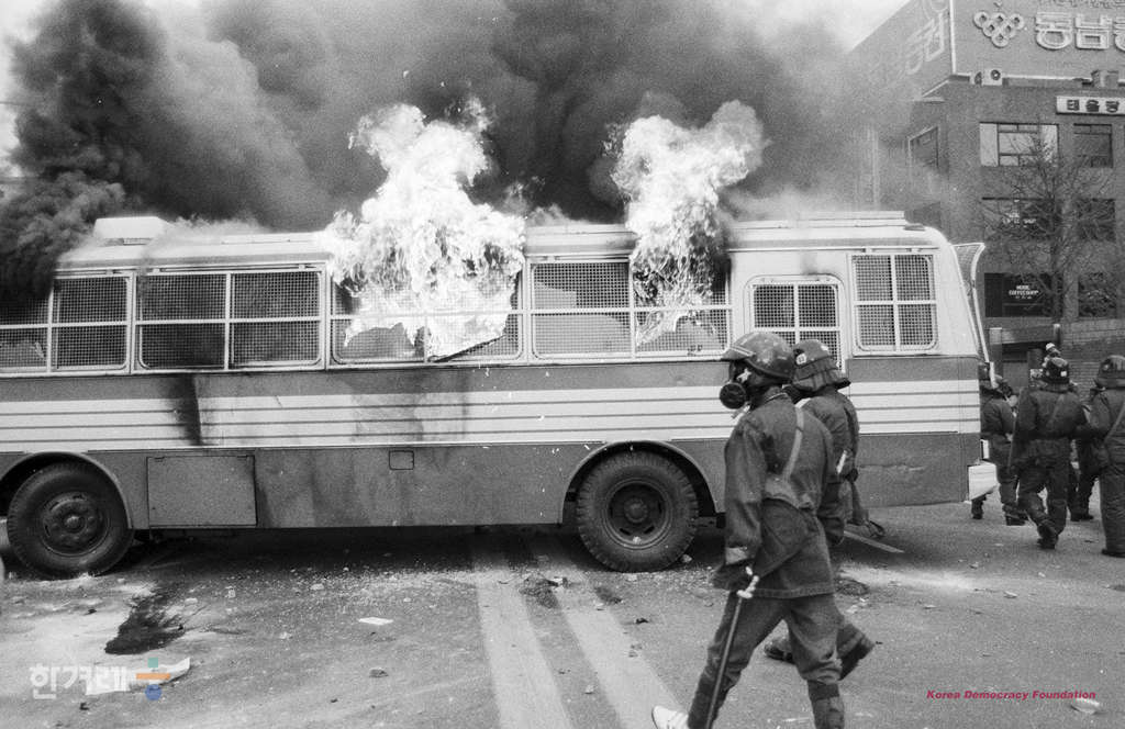- 1991년 4월 19일 오후6시 민자당 일당독재 분쇄와 민중기본권 쟁취 국민연합이 서울 종로 파고다공원에서 노정권 퇴진 국민대회를 가지려 했으나 경찰이 저지로 무산되자 학생 시민 재야단체 회원 5천여명은 종로서적앞 8차선 도로를 점거한 채 시위를 벌이고 있다.