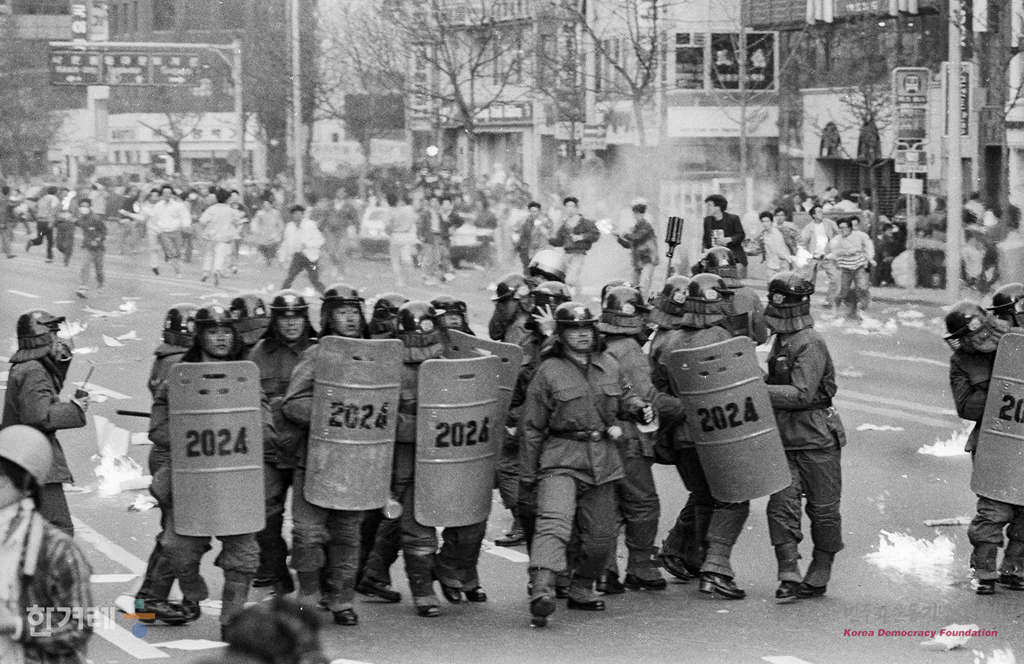 - 1991년 4월 19일 오후6시 민자당 일당독재 분쇄와 민중기본권 쟁취 국민연합이 서울 종로 파고다공원에서 노정권 퇴진 국민대회를 가지려 했으나 경찰이 저지로 무산되자 학생 시민 재야단체 회원 5천여명은 종로서적앞 8차선 도로를 점거한 채 시위를 벌이고 있다.