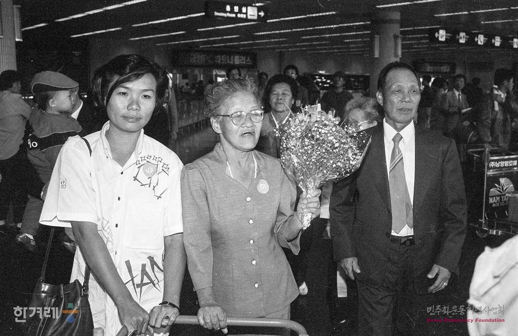 - 1991년 4월 20일 1930년대말 일제 강점기때 정신대로 끌려가 온갖 시련을 겪었던 노수복씨가 고희를 맞아 타이주재 한국대사관과 교민들의 주선으로 7년만에 다시 김포공항을 통해 귀국해 동생 노국현씨와 사론언니 권수남씨를 만나 울름을 터뜨리고 있다.
