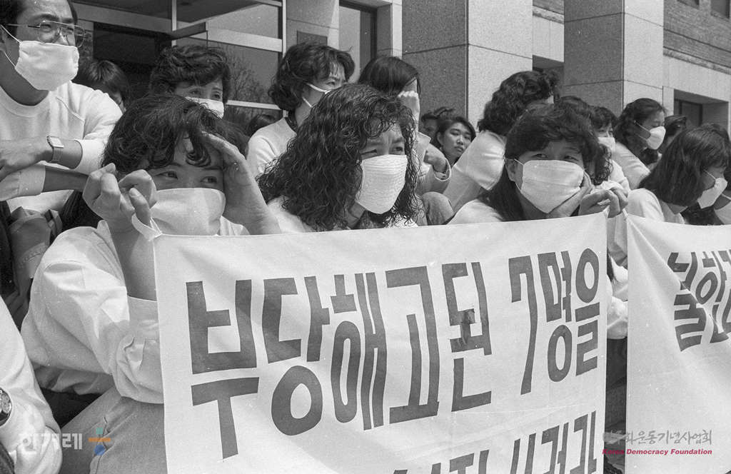 - 1991년 4월 24일 학생 성적 처리비용 불법징수가 물의를 빚고 있는 서울 구로구 구로5동 영림중학교에서 성적처리비용을 거두는 것에 반발하던 교사 7명을 부당해고하자 선생님들의 원직복직을 요구하며 항의농성을 하고 있다.