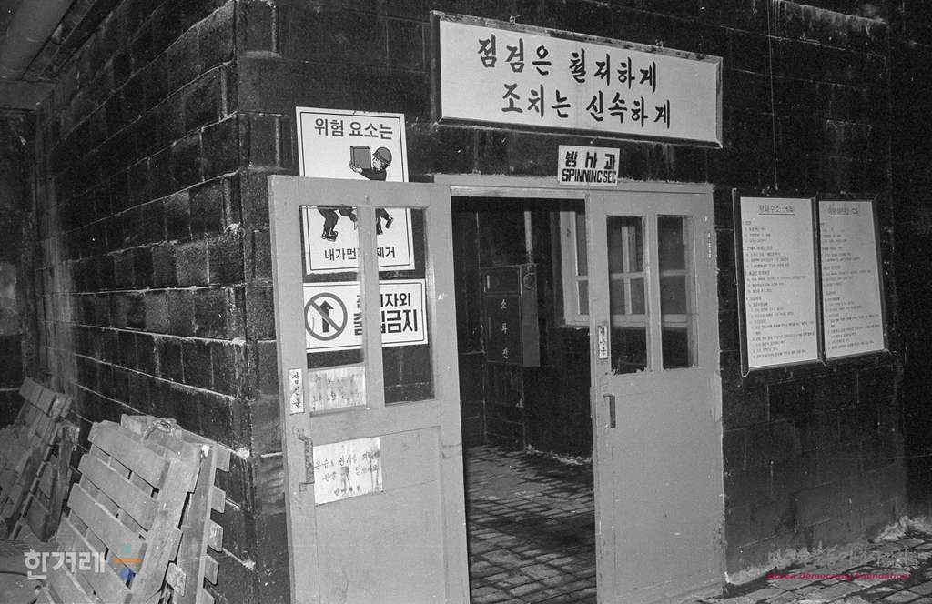 - 1991년 4월 26일 노동부 특별점검반이 원진레이온 현장을 조사하고 있다. 노동부는 88년 8월 원진레이온에 대해 실시한 특별근로감독때 유해물질 취급 노동자들에게 당시 1년에 한번식 하도록 돼 있는 특수건강진단을 3년간 한번도 실시하지 않았다.