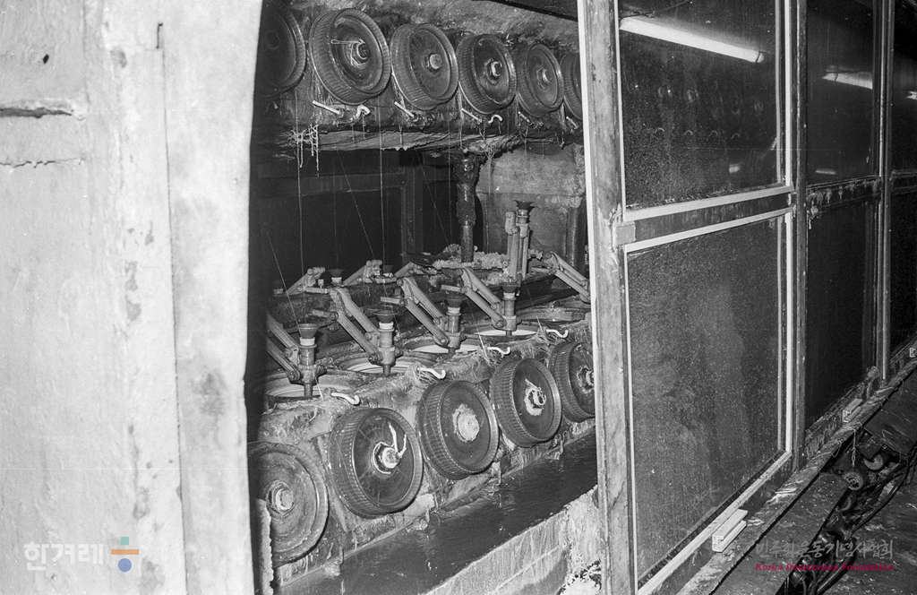 - 1991년 4월 26일 노동부 특별점검반이 원진레이온 현장을 조사하고 있다. 노동부는 88년 8월 원진레이온에 대해 실시한 특별근로감독때 유해물질 취급 노동자들에게 당시 1년에 한번식 하도록 돼 있는 특수건강진단을 3년간 한번도 실시하지 않았다.