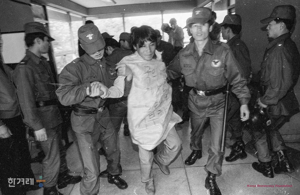 - 1991년 4월 26일 전국농민회총연맹 소속 농민들이 서울 여의도 국회의사당입구에서 쌀값보장을 요구하며 국회에 집입하려다 경찰에 의해 연행되고 있다.