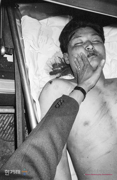 - 1991년 4월 28일 명지대생 강경대씨가 시위 진압과정에서 경찰에 맞아 숨져 옮겨진 서울 연세대 세브란스병원에서 경찰들이 강군을 검시하고 있다.