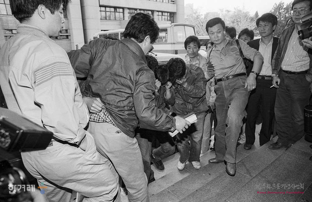 - 1991년 4월 27일 명지대생 강경대씨 타살사건을 수사중인 서울지검 서부지청 형사2부는 조사를 마친 서울시경 제4기동대 94중대 3소대 이형용일경, 장광주 임천순 김영순 상경 등 4명을 구속영장을 청구하고 있다.