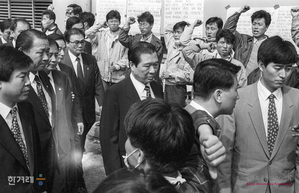 - 1991년 4월 29일 시위도중 경찰의 폭행에 의해 사망한 명지대생 강경대씨의 빈소가 마련된 신촌세브란스 병원 장레식장에 김대중 신민당 총재를 비롯한 당 관계자들이 조문을 하기위해 들어가고 있다.