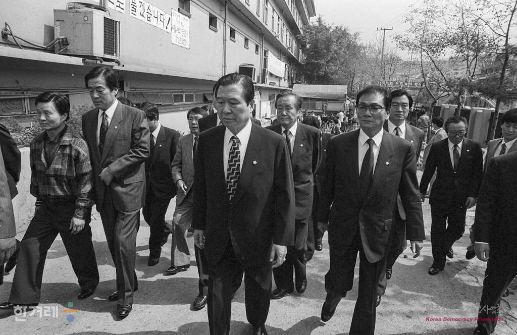 - 1991년 4월 29일 김대중 신민당 총재가 명지대생 강경대씨의 빈소가 마련된 서울 신천 세브란스병원 영안실에 조문하기 위해 당관계자들과 함께 들어가고 있다.