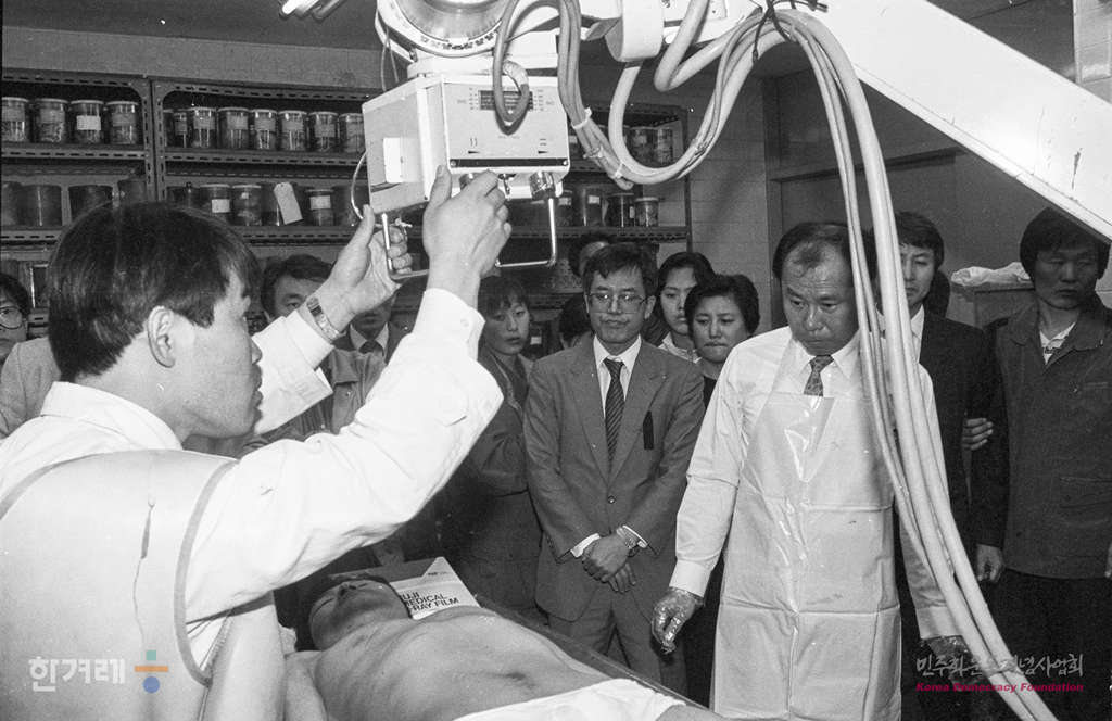 - 1991년 5월 1일 오후 5시 15분 명지대생 고 강경대씨의 주검에 대한 검찰과 유가족과 대책회의쪽의 공동검안이 강씨의 죽음 닷새만에 세브란스병원 검안실에서 실시되고 있다. 이날 검안에는 검찰쪽에서 서울지검 서부지청 형사2부 정현태 이학성 두 검사와 서울대 의대 이정빈 이윤성교수 등 4명이 참석했고 유족과 대책회의쪽에서는 아버지 강민조씨와 어머니, 누나, 양길승 성수의원 원장, 변박장 순천향병원 정형외과 의사 등 4명을 비롯한 양쪽 관계자 30여명이 참석했다.