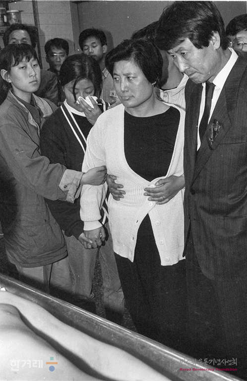 - 1991년 5월 1일 오후 5시 15분 명지대생 고 강경대씨의 주검에 대한 검찰과 유가족과 대책회의쪽의 공동검안이 강씨의 죽음 닷새만에 세브란스병원 검안실에서 실시되고 있다. 이날 검안에는 검찰쪽에서 서울지검 서부지청 형사2부 정현태 이학성 두 검사와 서울대 의대 이정빈 이윤성교수 등 4명이 참석했고 유족과 대책회의쪽에서는 아버지 강민조씨와 어머니, 누나, 양길승 성수의원 원장, 변박장 순천향병원 정형외과 의사 등 4명을 비롯한 양쪽 관계자 30여명이 참석했다.