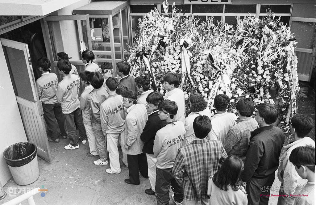 - 1991년 5월 1일 세계 노동절 102돌 기념대회를 서울 연세대 노천극장에서 마친 참가자들이 바로 이어서 민주광장으로 이동해 원진레이온 직업볍 살인 및 고 강경대 열사 폭력살인 규탄대회를 가졌다. 참석한 2만여명의 노동자 학생들은 공안통치종식과 노동운동 탄압중지를 요구하며 구호를 외쳤다.