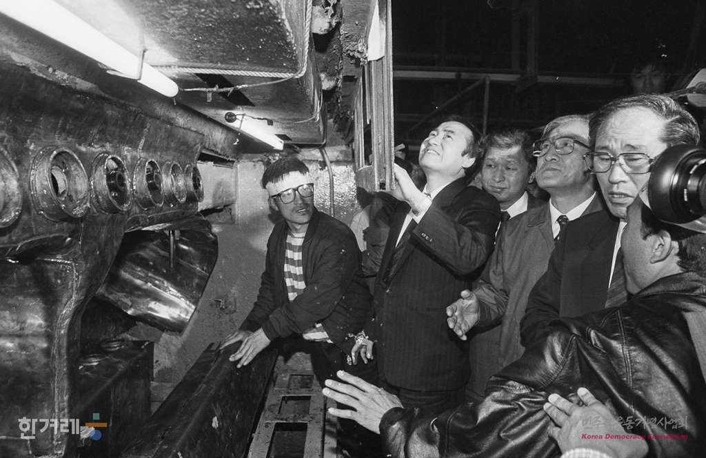 - 1991년 5월 2일 잇단 이황화탄소 중독환자 발생으로 물의를 빚고 있는 원진레이온을 방문한 원진레이온 직업병 조사를 위한 국회 노동위 소위원회 소속 의원들이 작업시설과 직업병 피해자 증언을 듣는 등 현장조사 활동을 하고 있다.