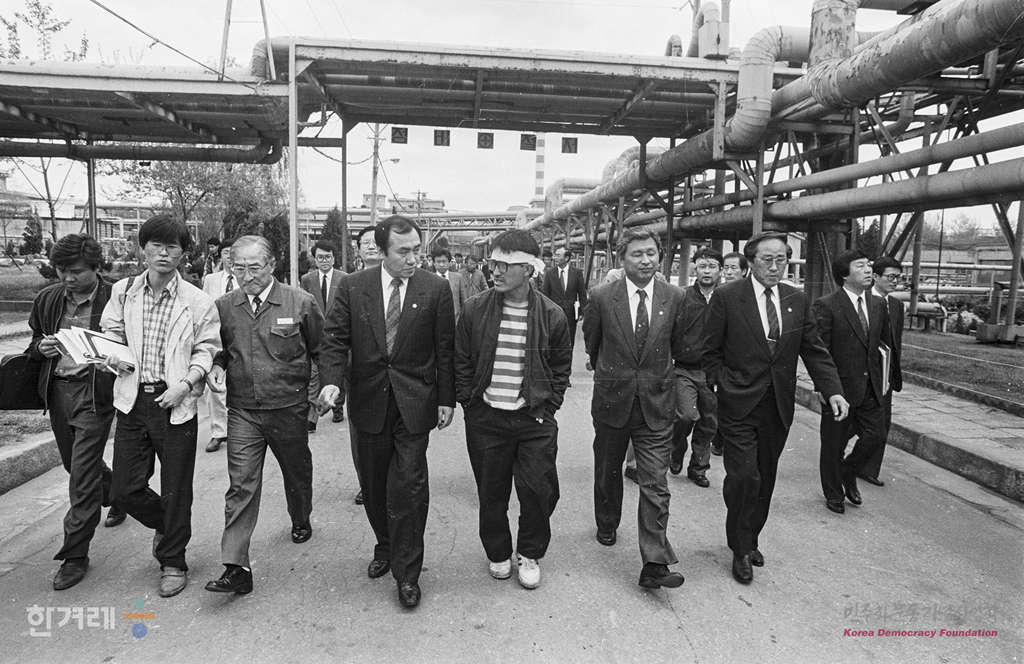 - 1991년 5월 2일 잇단 이황화탄소 중독환자 발생으로 물의를 빚고 있는 원진레이온을 방문한 원진레이온 직업병 조사를 위한 국회 노동위 소위원회 소속 의원들이 작업시설과 직업병 피해자 증언을 듣는 등 현장조사 활동을 하고 있다.