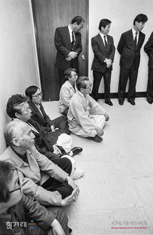 - 1991년 5월 3일 오후2시 강희남 계훈제 전문련 고문, 권종대 전농의장, 백기완 전노협 고문, 권영길 언론노련 위원장 등 명지대생 강경대씨 타살사건의 범국민 대책회의 대표들이 국회에서 정치권의 각성을 촉구하는 항의서한을 전달하려다 박준규 국회의장이 자리에 없자 의장실앞에서 4시간동안 농성을 벌이고 있다.