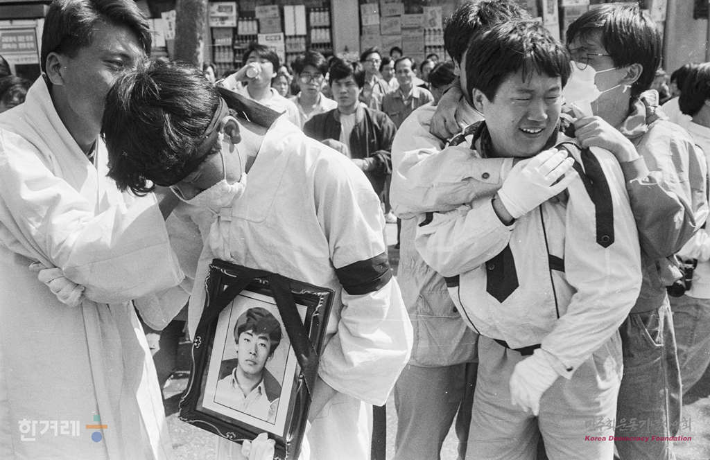 - 1991년 5월 4일 오후 1시 20분 강경대씨 타살사건에 항으해 분신자살해 2일 숨진 안동대생 김영균씨의 장례식이 경북대병원 영안실에서 유족과 친지 대학생 등 5백여명이 참석한 가운데 치러지고 있다. 장례식은 애초 가족장을 주장하는 유족에 의해 이날 오전 9시부터 치러질 예정이었으나 안동대생 1백여명이 화장 반대와 안동대 노제 등을 요구하며 저지하는 바람에 늦어졌다. 대학생 5벽여명은 경북대병원에서 3km 떨어진 대구시 동구 신천동 청구고교 앞길까지 대령태극기와 영정을 앞세우고 운구행령을 뒤따랐다.