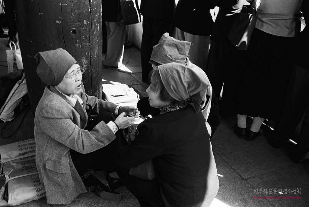 민가협 목요집회 326회 : 목요집회 중 뒤쪽에서 이야기를 나누고 있는 민가협 어머니들