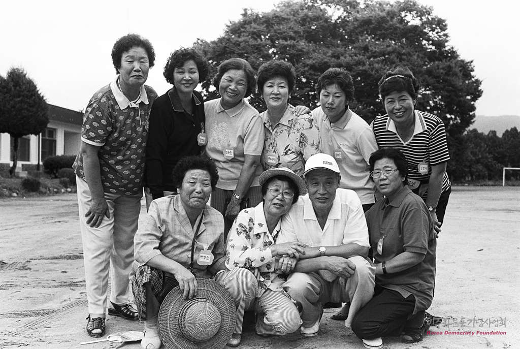 - 2000년 민가협 여름 수련회가 1박 2일동안 충북 충주시 앙성면 단암리 '좋은사람들의 모꼬지' 분교터에서 열렸다. 민가협 어머니들과 비전향 장기수 함세환씨가 기념사진을 찍고 있다.