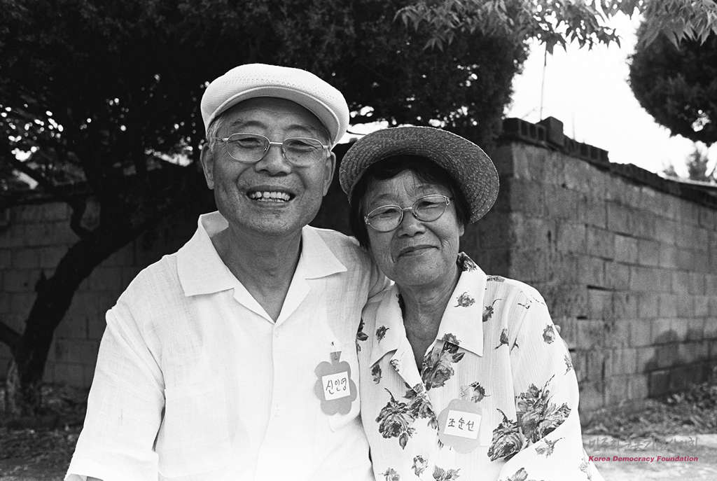 - 비전향 장기수 신인영씨와 민가협 회원 조순선씨가 기념사진을 찍고 있다.