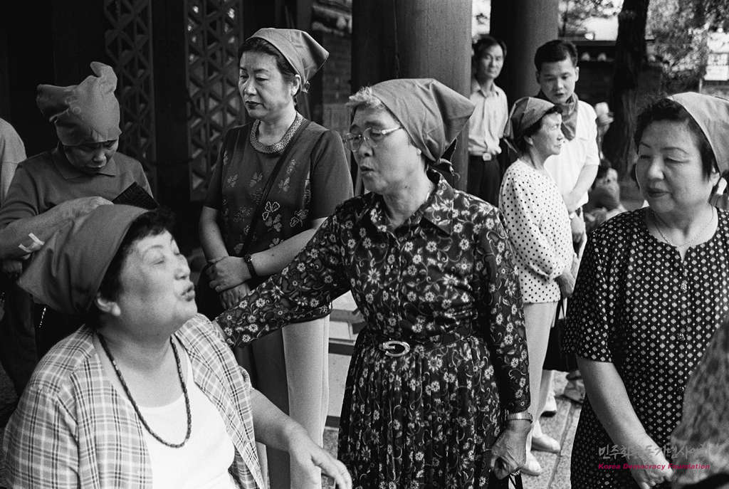 - 민가협 어머니들이 목요집회 후 인사를 나누고 있다.