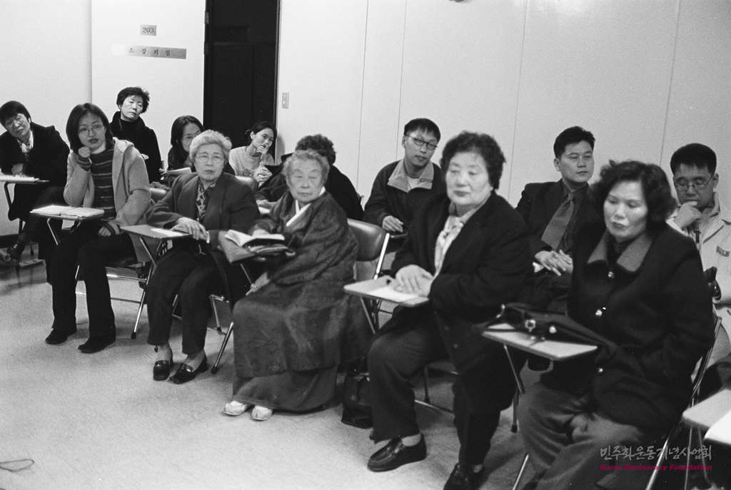 - '제7회 민가협 인권 강좌'에서 민가협 어머니들이 홍세화씨 강연을 듣고 있다.