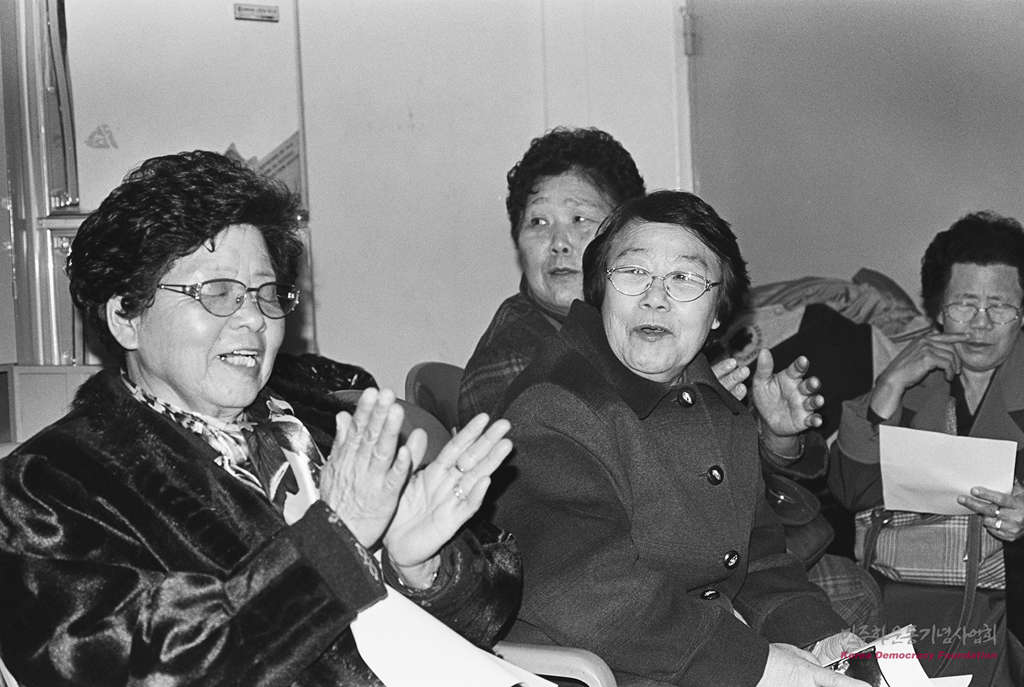 12회 양심수를 위한 시와 노래의 밤' 행사 대기실에서 웃고 있는 민가협 어머니들