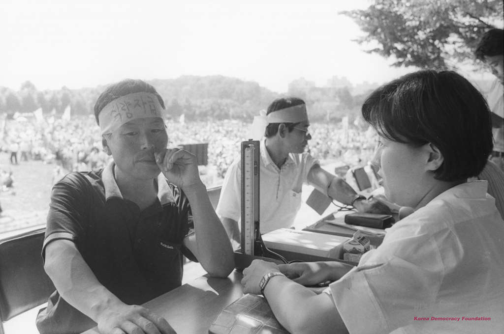 1998년 농민대회에서 혈압을 체크하고 있는 남성농민